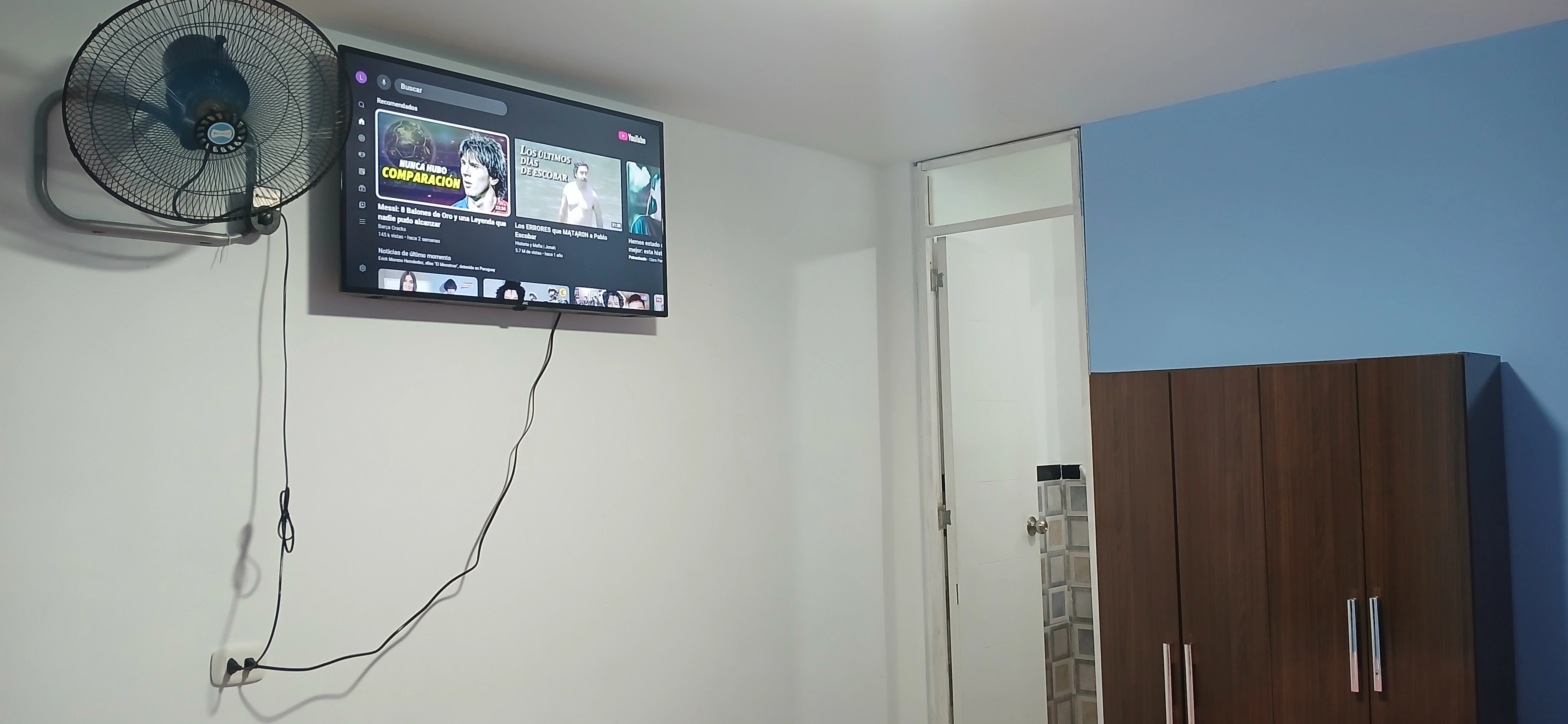 Una habitación tranquila y relajante, ideal para una persona o pareja. Cuenta con cama de dos plazas, baño privado, escritorio, ropero y Smart TV con YouTube. Perfecta para disfrutar de comodidad en el centro de Chulucanas.